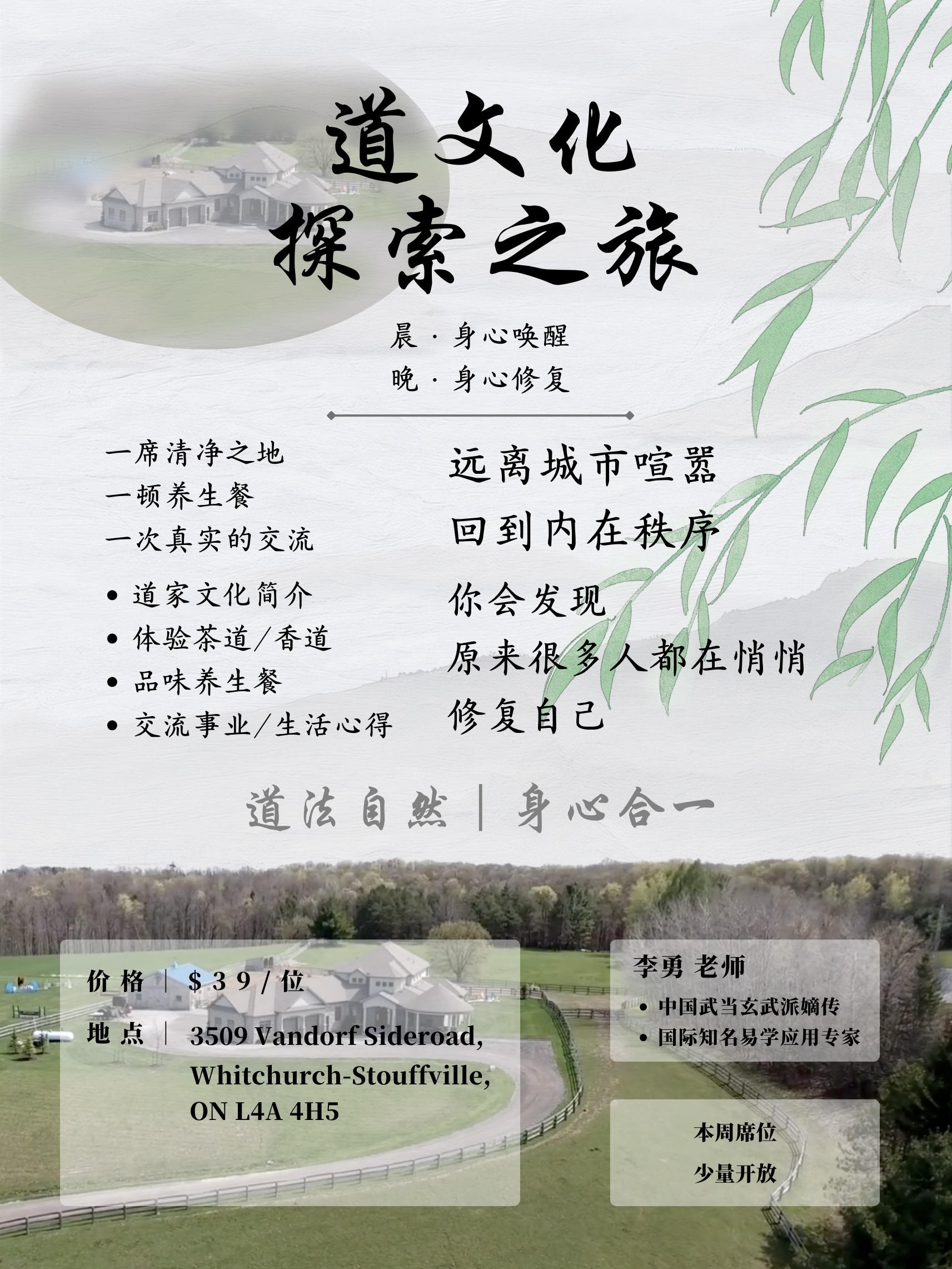 欢迎踏上一次独特的“道文化探索之旅”,与我们一同深入中华文明的精髓——道家思想的博大世界。本次活动旨在为现代都市人提供一个远离喧嚣、回归自然、探寻内心平静与智慧的宝贵机会。