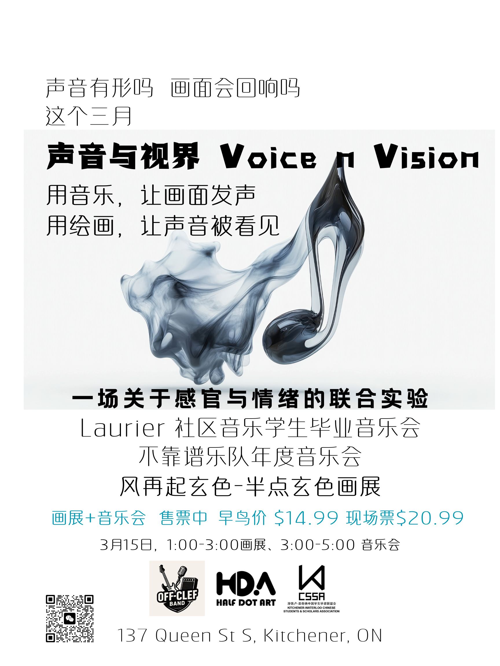 本次“声音与视界 Voice & Vision”联合艺术体验的成功举办,离不开各位合作伙伴的大力支持,包括Half Dot Art Studio 半点玄色艺术工作室和KWCSSA 滑铁卢-基奇纳中国学生联谊会。我们共同致力于为社区带来高质量的文化艺术活动,丰富大家的精神生活。